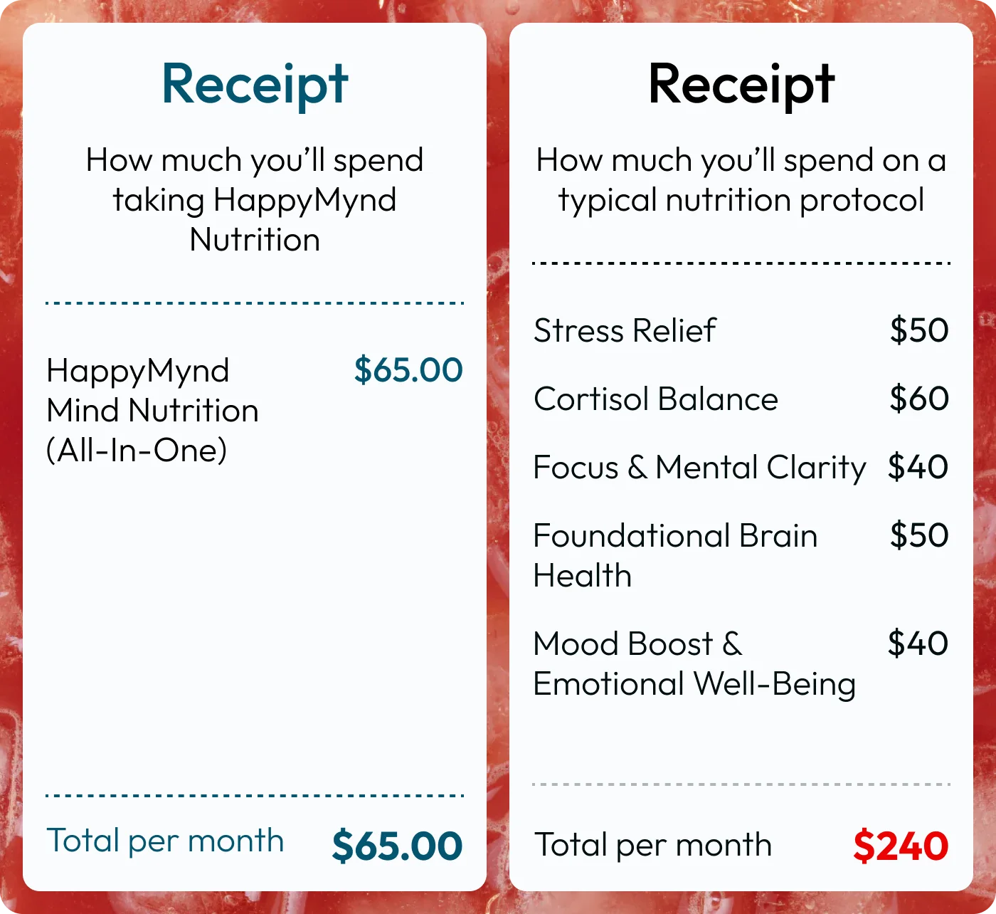 A $240 supplement stack, now in one $65 simple daily all-in-one solution. Get the power of 5 premium supplements in one master formula, saving you $175 every month.